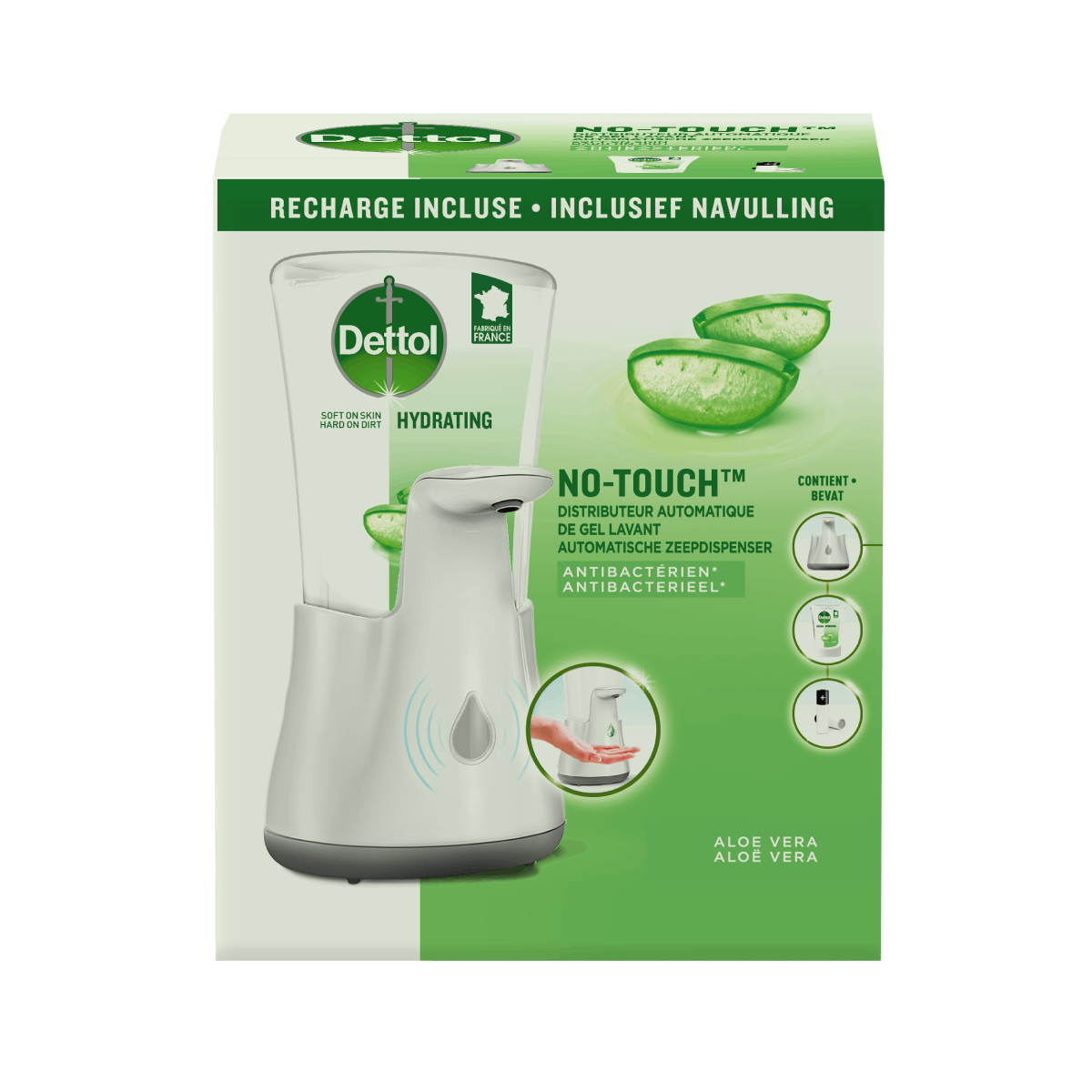 Doux sur la peau, dur avec la saleté. Le distributeur automatique de gel lavant Dettol No-Touch Aloe Vera verse la dose idéale de savon pour un lavage des mains hygiénique et sans gaspillage.